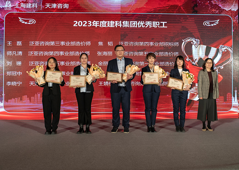 每一次的抵達都意味著新的開始,只有拼搏才會獲得成功。在2023年的不懈奮斗中,天津咨詢涌現出一批優秀員工,不僅彰顯了天咨人不畏艱難的奮斗精神,更為公司發展做出了卓越貢獻。公司班子成員鐘海榮、岳琳、楊柳分別宣讀了榮獲建科集團2023年度優秀職工稱號的天津咨詢優秀招標師、造價師、咨詢師、工程師、業務經理、工程總監、項目負責人、職能管理人員名單,并為獲獎代表頒獎。