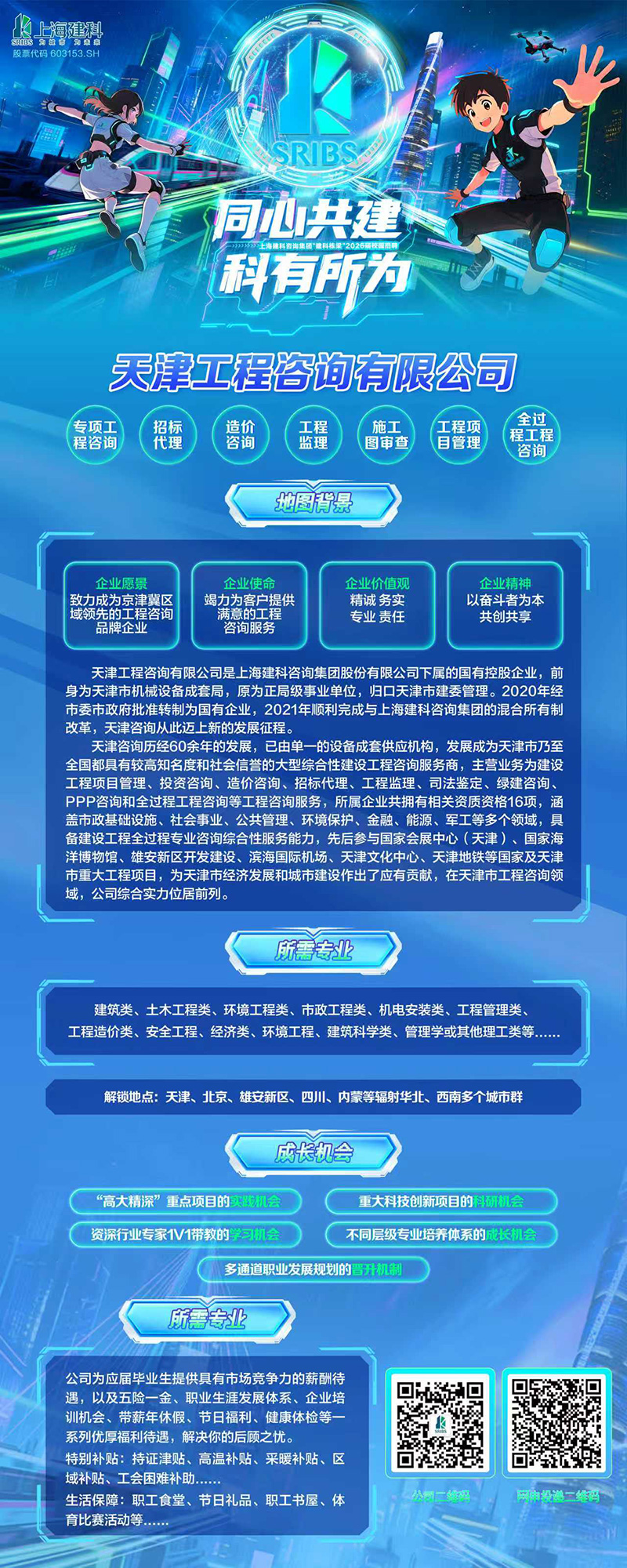 同心共建 科有所為天津工程咨詢有限公司啟動2026屆校園招聘 更新時間:2025-10-22 點擊:47 所屬欄目:公司新聞 誠邀2026屆畢業生參加城市專場宣講會(天津大學) 簡歷投遞方式 郵箱:tec_hr@sribs.com 電話:022-88365660 “我與天津咨詢的相遇” 2026屆校園招聘主題vlog