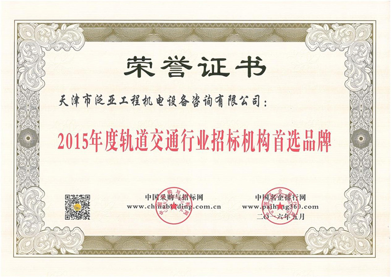 2015年度軌道交通行業招標機構首選品牌