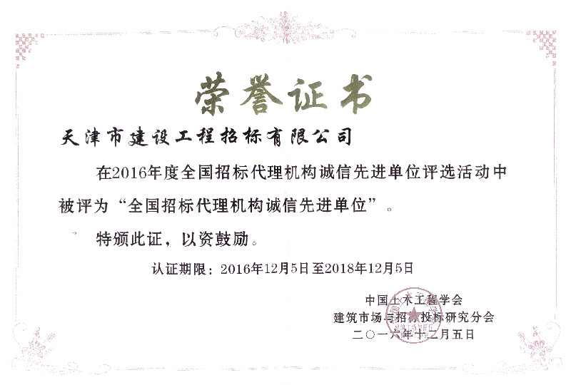 2016年度全國招標代理機構(gòu)誠信先進單位