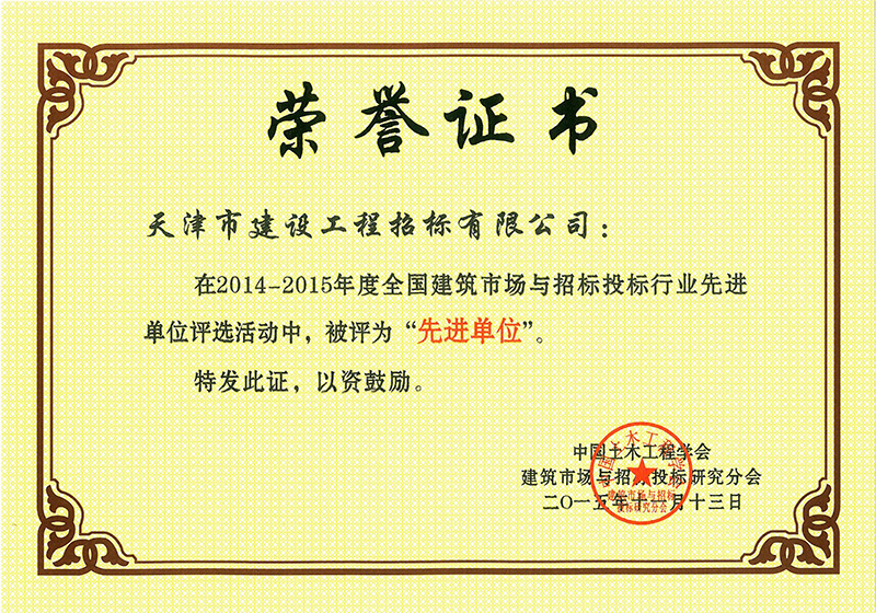 14-15年全國(guó)建筑市場(chǎng)與招標(biāo)投標(biāo)行業(yè)先進(jìn)單位