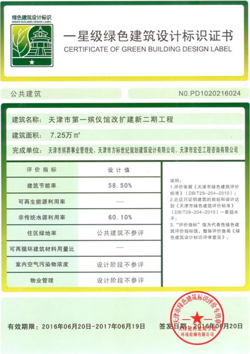 坐落在天津市北辰區(qū)鐵東路(第一殯儀館院內)。總投資約3.6億元,總建筑面積7.3萬平米,地上兩層,地下一層,其中:地上5.3萬平米,地下2萬平米,框架結構,屬于天津市民心工程。該項目于2016年6月通過專家會評審,獲得國家一星級綠色建筑設計標識。